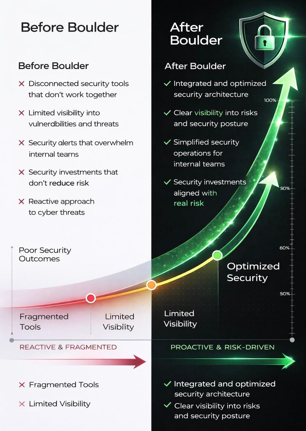 Boulder helps organizations move toward a structured, risk-driven security strategy that improves protection and visibility.