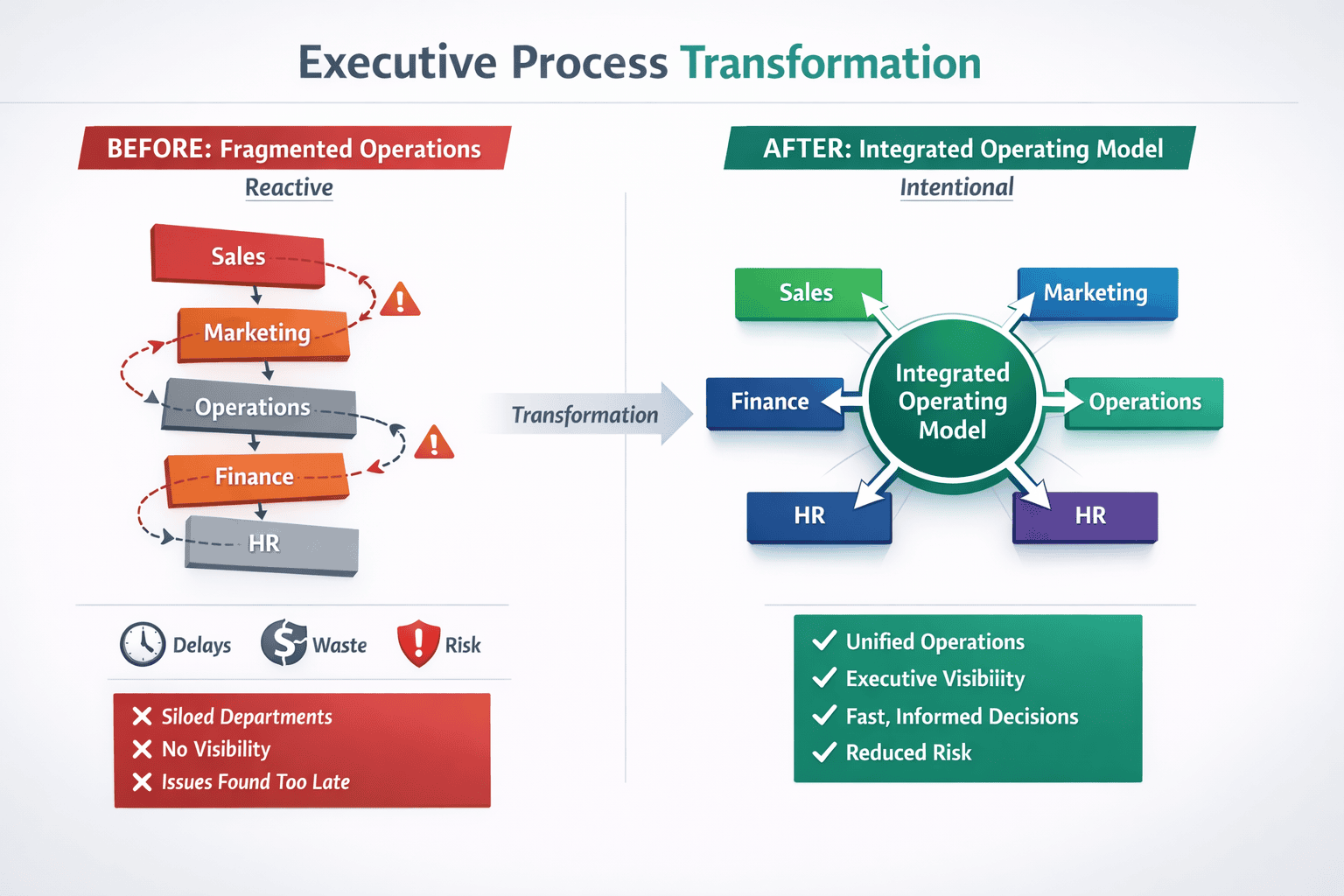 When departments don’t operate as one, execution slows down. Teams wait on information, repeat work, and react instead of act.